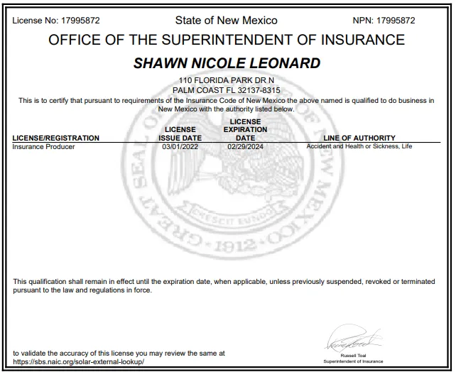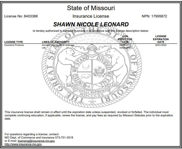 Hello, my name is Shawn Leonard and I have been a licensed independent insurance broker since 2016. I represent most major A-rated insurance companies for Mortgage Protection, Final Expense, Indexed Universal Life, Guaranteed Life insurance, Child Life insurance, Cancer, Heart Attack, and Stroke coverage, Accidental Death, Dental coverage, Medicare Supplement, and Medicare Advantage. Due to the wide range of carriers and coverages I offer, I have something for everyone.